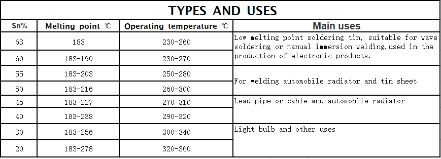 可生產各種類的焊錫絲:焊錫絲(錫含量從12%-63%)、無鉛環保錫絲、免洗焊錫絲、焊鋁焊錫絲、渡鎳焊錫絲、含銅焊錫絲、含銀焊錫絲、實心焊錫絲、其他訂做焊錫絲.