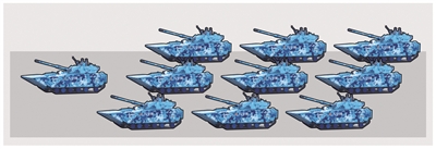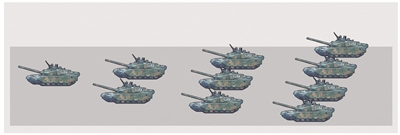 今年參加閱兵的坦克部隊來自北京軍區(qū)第38集團(tuán)軍。在所有參閱的裝備方隊里,它們將第一個駛過天安門廣場。和其他方隊使用的矩形編隊不同,坦克方隊以箭形編隊前行。這次參閱的坦克為99A式坦克,是99式坦克的改進(jìn)型,性能與99式坦克相比有本質(zhì)性的提升。坦克方隊受閱長徑達(dá)112.6米,每行駛100米,駕駛員需要調(diào)整方向48次才能保證騎線,展現(xiàn)的可謂是“指尖上的舞蹈”。
